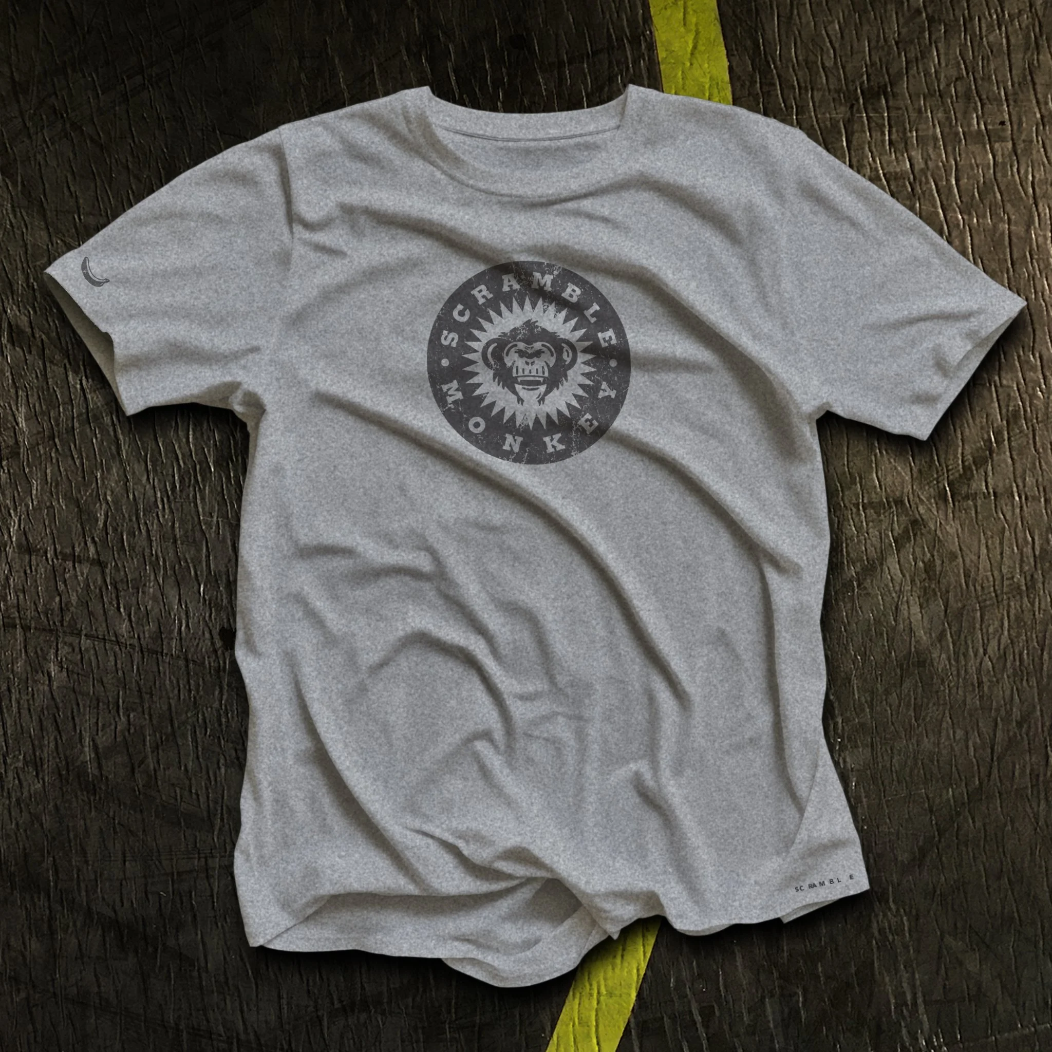 The signature banana on the sleeve is a nod to everyone who understands the scramble, no matter your role. And the scrambled “scramble” on the hem because—life’s a scramble.