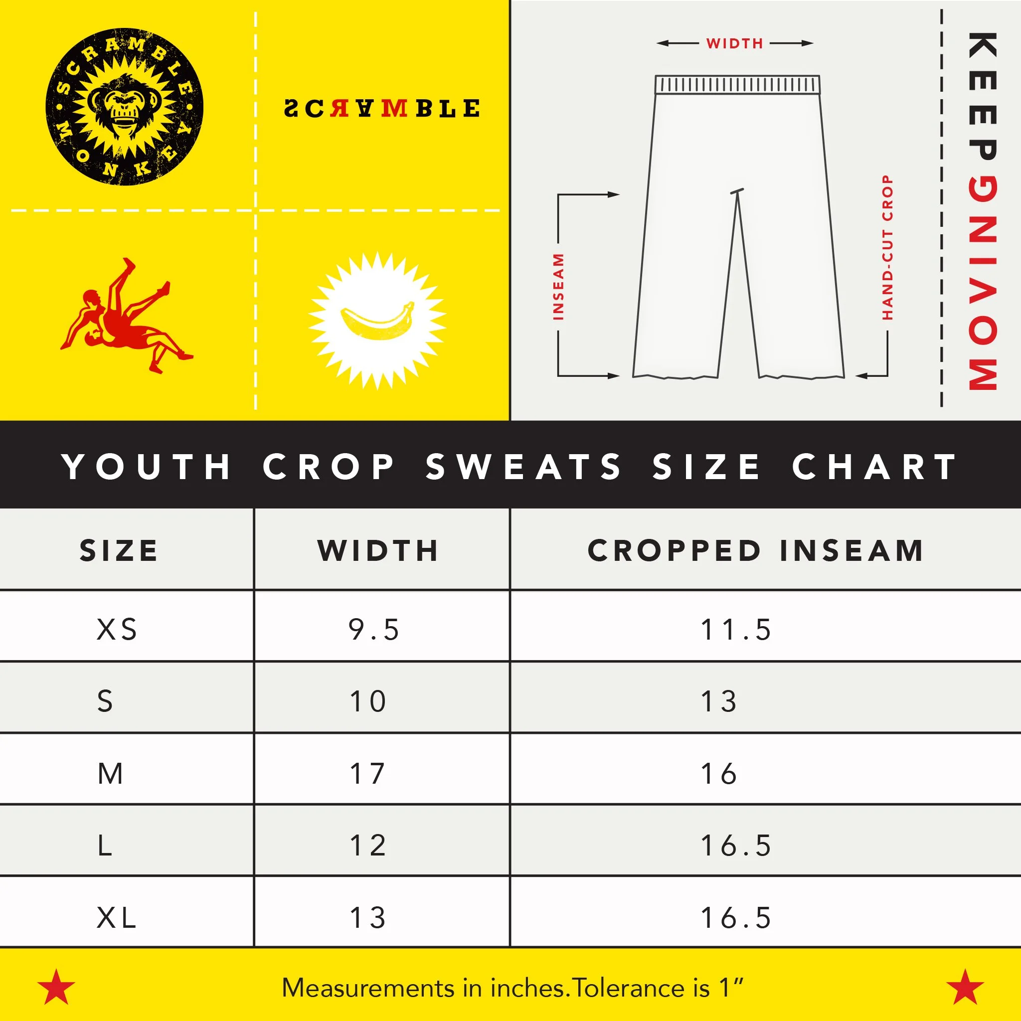 Scramble Monkey logo on the front, signature banana on the sleeve, and a scrambled “SCRAMBLE” on the bottom hem (sometimes different on every shirt). A super-durable shirt for casual wear or a tough practice.